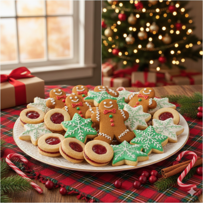 Bánh quy Noel hiện nay rất đa dạng về kiểu dáng và hương vị. Phổ biến nhất vẫn là bánh quy bơ truyền thống vì có mùi thơm nhẹ, dễ ăn và phù hợp với nhiều người. Ngoài ra còn có bánh quy socola, bánh quy vani, bánh quy trà xanh hay bánh quy yến mạch dành cho những ai thích vị thanh nhẹ.